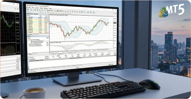 The MT5 trading platform can be accessed on supported desktop and mobile devices, allowing account review and trade management when required.